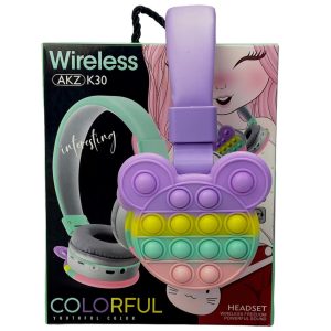 Ausinių korpusas yra padengtas spalvotais silikoniniais burbuliukais, kuriuos galima spaudyti.