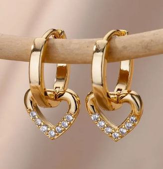 ### Nerūdijančio Plieno Auskarai „Širdelės“ su Kristalais