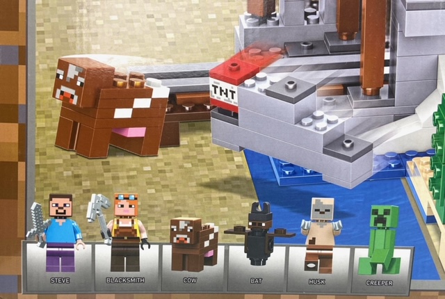 Su 834 detalėmis vaikas galės atkurti savo mėgstamas žaidimo scenas: pastatyti tvirtovę, kaimą, požemius ar portalą. Rinkinyje yra ir personažų figūrėlės (Styvas, zombiai, gyvūnai).