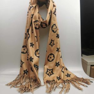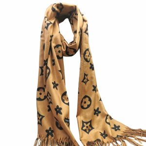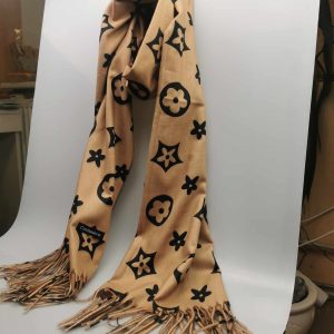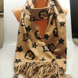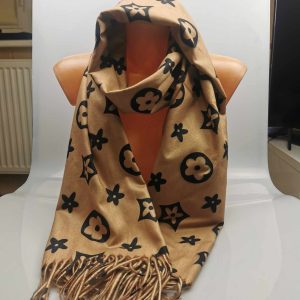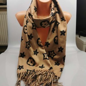 Moteriškas stilingas smėlio spalvos šalikas su vilna. Gražiai dera prie klasikinio ar kasdieninio stiliaus, išraiškingas įvaizdžio akcentas. Praktiškas vilnos ir viskozės ilgaamžis audinys labai švelnus ir jaukus dėvint, tinka rudens/žiemos sezonų metu. Šalikas papuoštas išraiškingais ornamentais ir kutais.