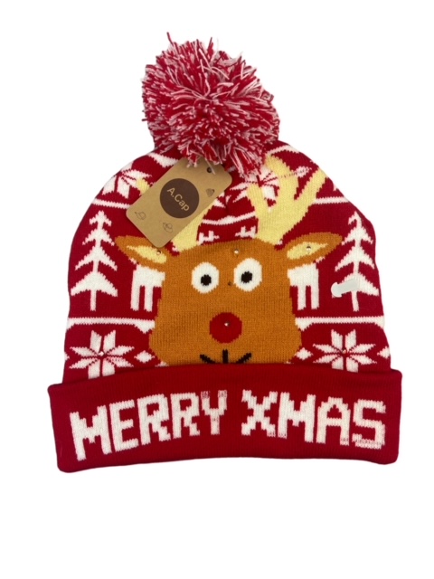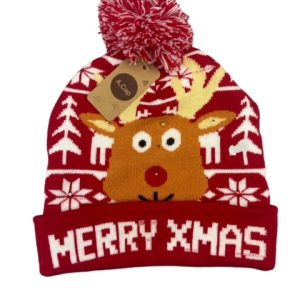 Klasikinis sveikinimas naujoje šviesoje! Ši jauki žieminė kepurė su užrašu „Merry Christmas“ (Linksmų Kalėdų) ir šviečiančiomis lemputėmis yra būtinas šio sezono atributas.