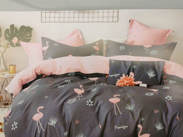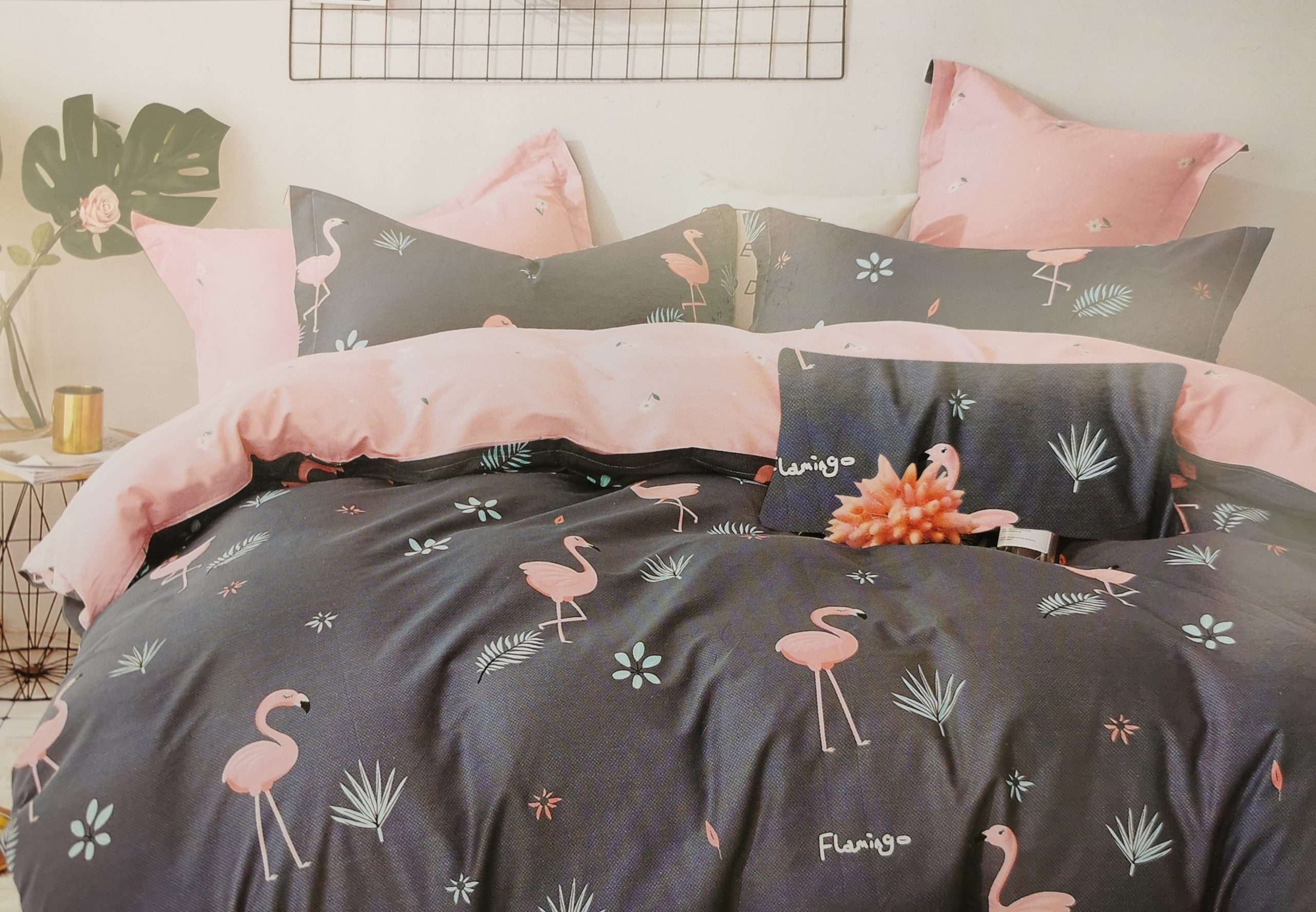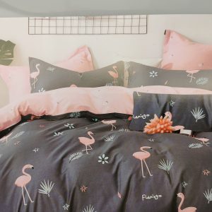 Viengulės patalynės komplektas Flamingai 200×160 medvilnė